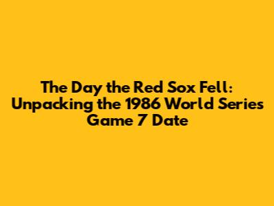 What's up, baseball fanatics! Let's take a trip down memory lane and talk about one of the most heart-wrenching games in baseball history: Game 7 of the 1986 World Series. If you're wondering about the exact date this iconic showdown occurred, buckle up, because we're diving deep. This wasn't just any baseball game; it was a pivotal moment that pitted the Boston Red Sox against the New York Mets in a series that had fans on the edge of their seats from start to finish. The drama, the tension, the sheer unadulterated agony and ecstasy – it all culminated on October 27, 1986. Yeah, guys, mark that date down in your baseball almanacs, because it's a date etched in the annals of the sport. This game wasn't just about who won; it was about how they won, and for Red Sox fans, how they lost. The narrative surrounding Game 7 is rich with unforgettable plays, managerial decisions that are still debated today, and a collapse that still gives Boston faithful nightmares. We're going to unpack the significance of that date, what led up to it, and the lasting legacy of a game that defined a generation of baseball fans. So, grab your peanuts and Cracker Jack, and let's get started on this epic journey back to a time when baseball was, perhaps, at its most dramatic.