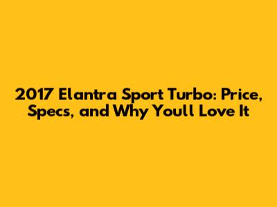 Delving into the 2017 Elantra Sport Turbo Price: What to Expect