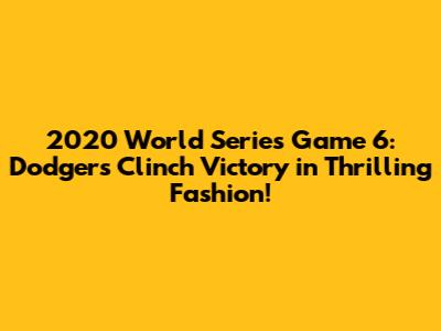 2020 World Series Game 6: Dodgers Triumph!