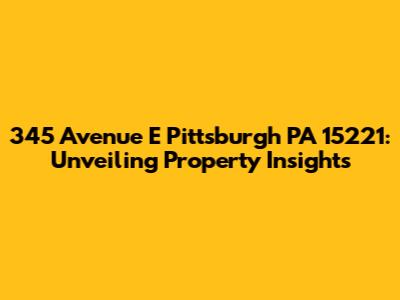 Hey there, real estate enthusiasts! Let's dive deep into the world of 345 Avenue E Pittsburgh, PA 15221. This isn't just about a street address; it's a gateway to understanding property values, neighborhood vibes, and what makes this location tick. Whether you're a prospective buyer, a curious investor, or just someone who loves to explore the real estate landscape, this guide is for you. We'll break down everything from property types and market trends to local amenities and community highlights. So, buckle up, and let's get started on this exciting journey.