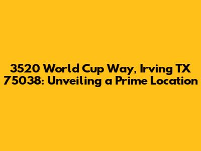 Hey guys! Let's dive into the details of 3520 World Cup Way, Irving, TX 75038. This address isn't just a string of numbers and letters; it's a gateway to a specific location in Irving, Texas. Understanding the specifics of this address is super important for anyone looking to visit, move, or simply learn more about the area. We're going to explore what makes this location stand out, looking at its neighborhood, nearby amenities, and potential points of interest. Get ready to uncover the charm and practicality of 3520 World Cup Way!