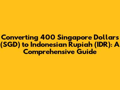 Hey guys! Ever found yourself wondering exactly how much your 400 Singapore dollars are worth in Indonesian Rupiah? You're definitely not alone! Currency conversions can seem tricky, but don't worry, we're here to break it down for you in a super easy-to-understand way. This guide will walk you through everything you need to know about converting SGD to IDR, including the current exchange rates, factors that influence these rates, and some handy tips for getting the most bang for your buck. Whether you're planning a trip to Bali, sending money to family, or just curious about the value, let's dive in and unravel the mystery of SGD to IDR conversions!