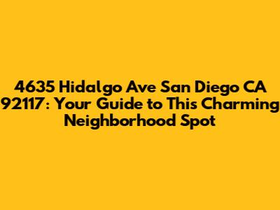 Hey guys! Let's dive into what makes 4635 Hidalgo Ave in San Diego, CA 92117 such a cool place to know about. Whether you're a local looking for something new or thinking about visiting, understanding the vibe and unique aspects of a specific address can totally change your perspective. We're talking about more than just a spot on the map; we're exploring a little slice of San Diego life. Think about it – every street, every house, every business has a story, and today, we're unraveling the narrative of this particular Hidalgo Avenue address. It's not just about the physical location; it's about the community, the accessibility, and the general feel of the area. San Diego is a city brimming with diverse neighborhoods, each with its own personality, and 92117, specifically the area around 4635 Hidalgo Ave, has its own distinct charm. We'll break down what makes this address noteworthy, touching on its surroundings, potential points of interest, and why it might just catch your eye. So, grab a coffee, settle in, and let's get to know 4635 Hidalgo Ave a little better. It's all about uncovering those hidden gems and appreciating the little details that make a place special. We're going to explore this San Diego spot with a focus on providing you with valuable insights, making this more than just a directory listing, but a real exploration of a specific locale. Get ready to discover what makes this piece of San Diego, California, tick.