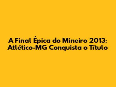 A Final Épica Do Mineiro 2013: Atlético-MG Conquista O Título