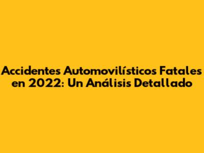 Accidentes Automovilísticos Fatales En 2022: Un Análisis Detallado