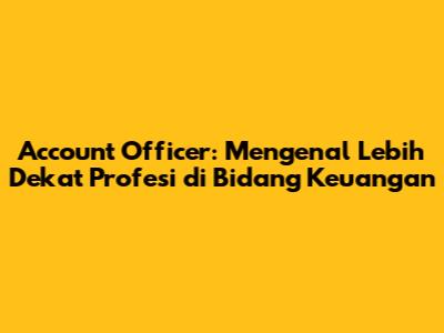 Account Officer adalah seorang profesional yang bertanggung jawab untuk mengelola hubungan dengan nasabah di lembaga keuangan. Mereka bertindak sebagai penghubung utama antara bank atau perusahaan keuangan dengan nasabah, memastikan kepuasan nasabah dan pertumbuhan bisnis. Secara sederhana, mereka adalah orang yang mengurusi kebutuhan finansial nasabah. Ruang lingkup pekerjaan mereka cukup luas, mulai dari memberikan informasi produk, memproses aplikasi pinjaman, hingga menawarkan solusi keuangan yang sesuai dengan kebutuhan nasabah. Account Officer biasanya bekerja di bank, perusahaan pembiayaan, atau lembaga keuangan lainnya. Mereka melayani berbagai jenis nasabah, mulai dari individu, usaha kecil dan menengah (UKM), hingga perusahaan besar. Tugas utama mereka adalah membangun dan memelihara hubungan baik dengan nasabah, memahami kebutuhan finansial mereka, dan memberikan solusi yang tepat. Selain itu, mereka juga bertanggung jawab untuk menjaga kualitas portofolio pinjaman, memastikan kepatuhan terhadap regulasi, dan mencapai target penjualan yang telah ditetapkan. Jadi, kalau kalian ketemu orang yang kerjanya ramah, jago ngobrol soal keuangan, dan selalu siap membantu, kemungkinan besar dia adalah seorang Account Officer.