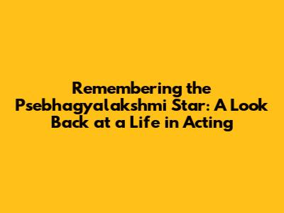 Actor's Passing: Remembering The Psebhagyalakshmi Star