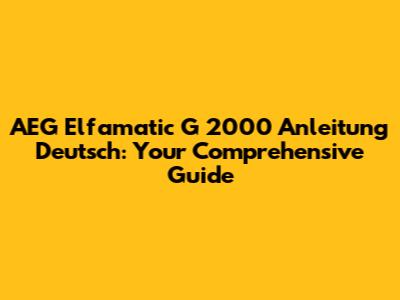 AEG Elfamatic G 2000 Anleitung: Your German Guide