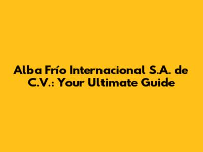 Alba Frío Internacional S.A. De C.V.: Your Ultimate Guide