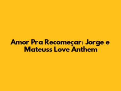 Amor Pra Recomeçar: Jorge E Mateus's Love Anthem