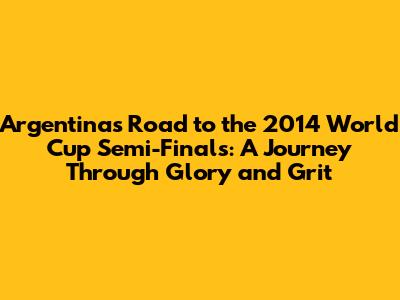 Hey sports fanatics! Let's rewind the clock to the 2014 FIFA World Cup, hosted in the vibrant heart of Brazil. This tournament was a rollercoaster of emotions, filled with stunning goals, nail-biting finishes, and unforgettable moments. Today, we're going to dive deep into Argentina's incredible journey to the semi-finals, a story of skill, determination, and a touch of magic. Argentina, a nation steeped in footballing history and passion, arrived in Brazil with high expectations. Boasting a squad packed with world-class talent, including the legendary Lionel Messi, they were hungry to reclaim the coveted trophy. Their path to the semi-finals was paved with both triumphs and tests, showcasing the team's resilience and the sheer drama that defines the beautiful game. Get ready, guys, because we're about to relive the excitement, the tension, and the unforgettable moments that defined Argentina's quest for glory in 2014.