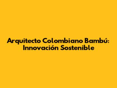 Arquitecto Colombiano Bambú: Innovación Sostenible