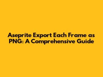 Hey guys! Ever found yourself knee-deep in an awesome animation project in Aseprite and needed to pull out each frame as a separate PNG image? Maybe you're prepping assets for a game, creating GIFs, or just want to share individual frames online. Well, you're in the right place! This guide will walk you through how to export each frame as PNG in Aseprite, making your workflow a total breeze. We'll cover everything from the basics to some cool advanced tips and tricks. Let's dive in and get those frames exported!