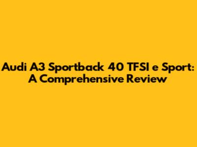 Hey guys! Let's dive into the Audi A3 Sportback 40 TFSI e Sport. This car is a plug-in hybrid that combines efficiency with Audi's signature sporty feel. This article provides a detailed look at what makes this model stand out, covering everything from its performance and design to its technology and overall driving experience. If you're considering a blend of electric and gasoline power, keep reading to see if this A3 Sportback is the right fit for you!