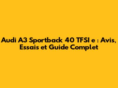 Audi A3 Sportback 40 TFSI E: Avis, Essais Et Guide Complet