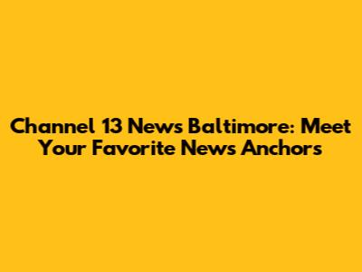 The Faces of Channel 13: A Closer Look at Baltimore's Trusted Anchors