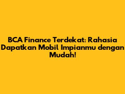 BCA Finance terdekat adalah jawaban bagi kalian yang sedang mencari solusi kredit mobil yang terpercaya dan mudah diakses. Sebagai salah satu lembaga pembiayaan terkemuka di Indonesia, BCA Finance menawarkan berbagai kemudahan dan keuntungan bagi calon konsumen. Artikel ini akan membahas secara mendalam tentang bagaimana menemukan BCA Finance terdekat, keuntungan menggunakan layanan mereka, serta tips jitu agar pengajuan kredit mobilmu disetujui.