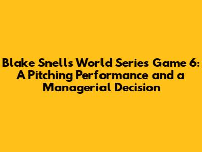 Blake Snell's Game 6: Controversial Exit?