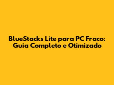BlueStacks Lite Para PC Fraco: Guia Completo E Otimizado
