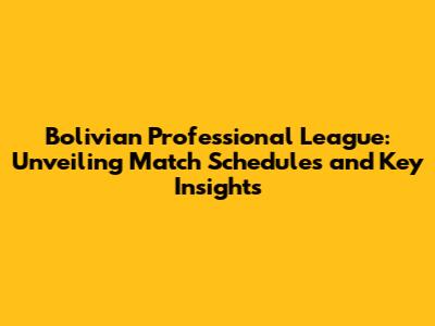 Bolivian Professional League: Match Schedules & Insights