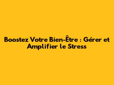Boostez Votre Bien-Être : Gérer Et Amplifier Le Stress