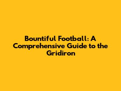 Bountiful Football: A Comprehensive Guide To The Gridiron
