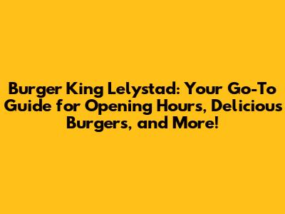 Burger King Lelystad: Opening Hours & More!