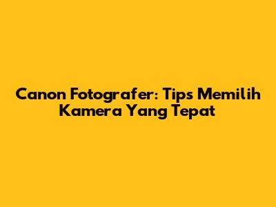 Canon Fotografer: Tips Memilih Kamera Yang Tepat