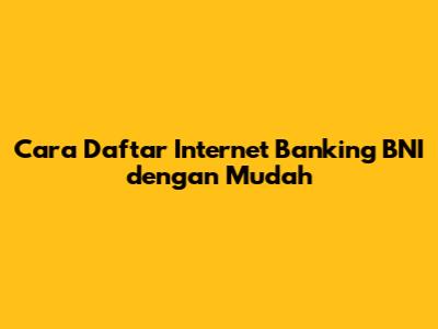 Cara Daftar Internet Banking BNI Dengan Mudah
