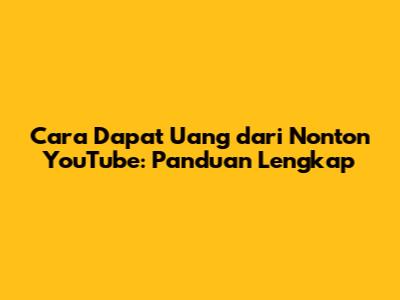 Cara Dapat Uang Dari Nonton YouTube: Panduan Lengkap