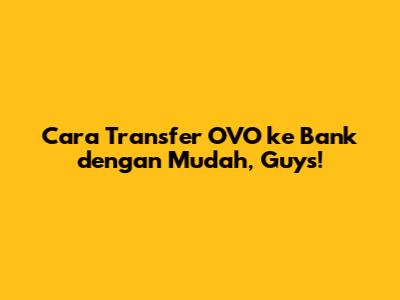 Oke, jadi gini lho, teman-teman. Sering banget kan kita punya saldo OVO yang lumayan, tapi pengen banget dipindahin ke rekening bank buat kebutuhan lain? Entah itu buat bayar tagihan, belanja online, atau sekadar ngumpulin duit di bank. Nah, kabar baiknya, transfer OVO ke bank itu gampang banget, kok! Gak perlu ribet kayak dulu lagi. Kalian cuma perlu beberapa langkah simpel dan voila, uangnya udah bisa langsung masuk ke rekening bank kalian. Mau tau gimana caranya? Simak terus ya, aku bakal jelasin step-by-step biar kalian gak salah paham dan bisa langsung praktik sendiri. Dijamin anti gagal, deh! Terus, penting juga nih buat kalian ketahui, ada beberapa hal yang perlu disiapin sebelum mulai transfer. Misalnya, pastikan aplikasi OVO kalian udah versi terbaru, terus nomor rekening bank yang mau dituju itu udah bener-bener valid. Soalnya, kalau salah, bisa repot ngurusnya nanti. Oh ya, jangan lupa juga, ada biaya admin yang dikenakan setiap kali kalian transfer. Besarnya biaya ini biasanya standar, tapi baiknya dicek lagi di aplikasi OVO biar gak kaget nanti. Jadi, sebelum kalian mulai, pastikan saldo OVO kalian itu cukup ya, gak cuma buat jumlah yang mau ditransfer, tapi juga buat nutupin biaya adminnya. Intinya, transfer OVO ke bank itu bukan cuma soal teknis, tapi juga soal persiapan. Makin siap kalian, makin lancar prosesnya. Gak perlu takut salah atau bingung, karena panduan ini bakal bantu kalian banget. Kita bakal kupas tuntas semua informasinya, mulai dari syaratnya, langkah-langkahnya, sampai tips-tips biar transfer kalian aman dan cepat sampai tujuan. Siap-siap jadi jagoan transfer OVO, nih!