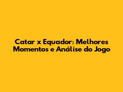 Catar X Equador: Melhores Momentos E Análise Do Jogo
