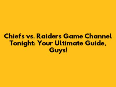 Chiefs Vs. Raiders Game Channel Tonight: Find Out Now!