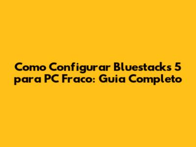 Como Configurar Bluestacks 5 Para PC Fraco: Guia Completo