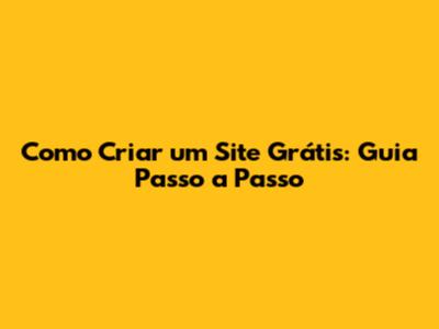 Como Criar Um Site Grátis: Guia Passo A Passo