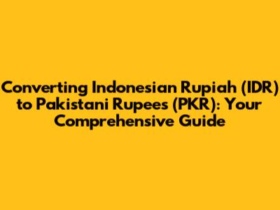 Hey there, finance enthusiasts! Ever wondered about the intricacies of currency conversion, especially when you're looking at something like converting Indonesian Rupiah (IDR) to Pakistani Rupees (PKR)? Well, you're in the right place! This guide is designed to break down everything you need to know about this process. Whether you're planning a trip, making an international payment, or just curious about how these currencies stack up, we've got you covered. We'll explore the current exchange rates, the factors that influence them, and the most efficient ways to convert your IDR to PKR. So, let's dive in and demystify the world of currency exchange, making it understandable for everyone, from seasoned investors to curious beginners. This journey is all about providing you with the knowledge and tools you need to navigate these financial waters with confidence. Get ready to transform your understanding of IDR to PKR! This conversion is more than just numbers; it's about understanding global economics and making informed decisions. Let's make it simple, clear, and absolutely useful for you. The world of currency conversion can seem complex, but with the right information, it becomes a manageable, even fascinating, area to explore. Are you ready to convert? Let's get started!