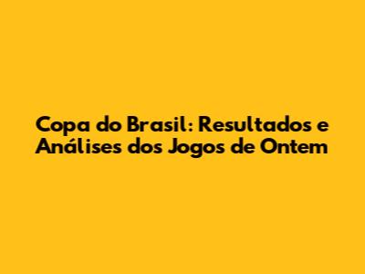 Copa Do Brasil: Resultados E Análises Dos Jogos De Ontem