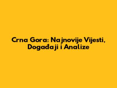 Crna Gora: Najnovije Vijesti, Događaji I Analize