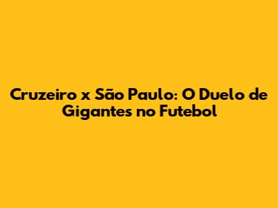 Cruzeiro X São Paulo: O Duelo De Gigantes No Futebol