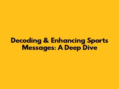 Decoding & Enhancing Sports Messages