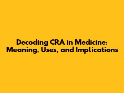 Decoding CRA In Medicine: Meaning, Uses, And Implications