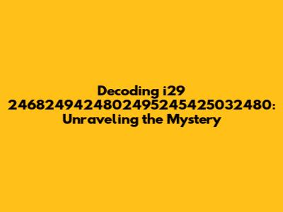 Hey there, data detectives! Ever stumbled upon a sequence of numbers like "i29 2468249424802495245425032480" and thought, "What in the world is that?" Well, you're not alone! These cryptic codes can seem like they're from another planet. But fear not, because we're diving deep to decode this numerical enigma. This is our quest to unlock the secrets behind the i29 2468249424802495245425032480 sequence, exploring its potential meanings, origins, and significance. Are you ready to crack the code? Let's get started!