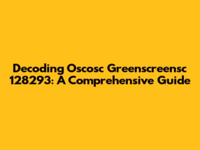 Decoding Oscosc Greenscreensc 128293: A Comprehensive Guide