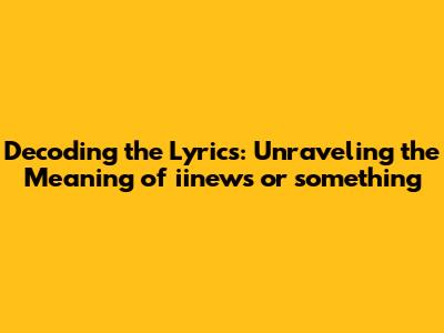 Decoding The Lyrics: Unraveling The Meaning Of iinews Or Something