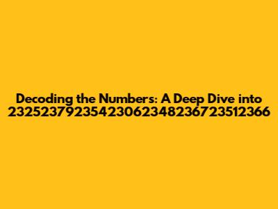 Hey everyone, let's dive into something a little different today! We're going to break down the intriguing sequence of numbers: 23252379235423062348236723512366. Now, I know what you're thinking – that's a long string of digits, right? But trust me, there's always something interesting to uncover when we start peeling back the layers. Maybe you've stumbled upon this sequence somewhere and you're curious, or perhaps you're just a fellow number enthusiast. Either way, you're in the right place. We're going to explore different angles, possibilities, and potential meanings behind this unique combination. Ready to decode? Let's get started!