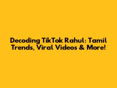 Decoding TikTok Rahul: Tamil Trends, Viral Videos & More!