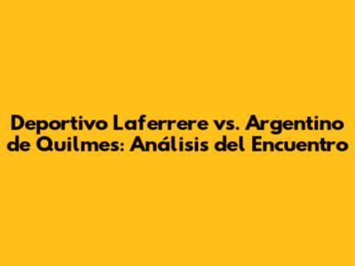 Deportivo Laferrere Vs. Argentino De Quilmes: Análisis Del Encuentro