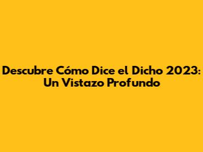 Descubre 'Cómo Dice El Dicho' 2023: Un Vistazo Profundo