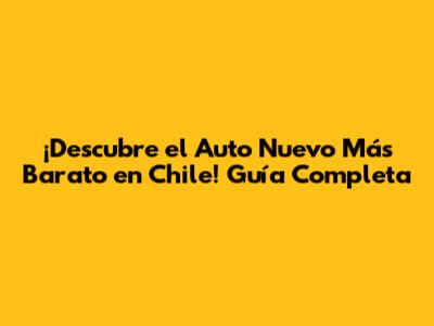 ¡Descubre El Auto Nuevo Más Barato En Chile!