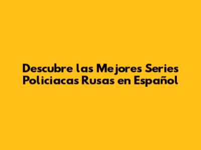 Descubre Las Mejores Series Policiacas Rusas En Español